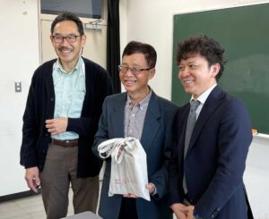 講演前には東6号館4階にて、本講演会の世話人の 島田先生(写真左)、曽我部先生(右) と活発な意見交換が行われ、Chen 博士(中央)との再会を喜ぶ和やかな時間となりました。