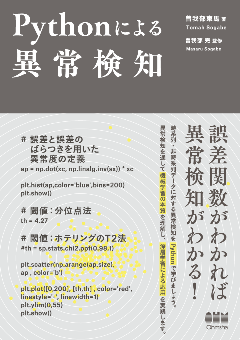 曽我部 東馬 准教授による著書「Pythonによる異常検知」が、オーム社より2月26日に発売されます。